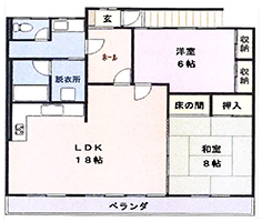 間取り:2LDK(洋6×1・和8×1・LDK18)