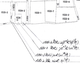 @南側市道(2642号線)接道部分に対して道路中心線より約0.2m〜0.25mの道路後退線有ります。 |
